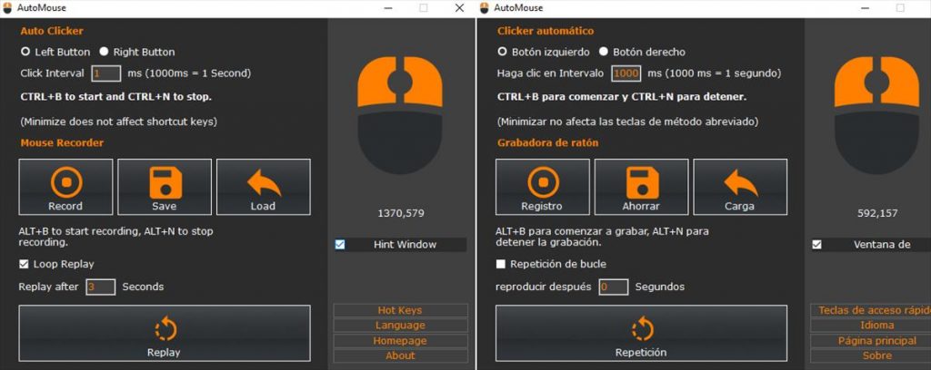 – Realiza repetición automática del movimiento y clicks del ratón. Es aquí donde le veo potencial. Podemos hacer una acción y dejar que el programa la repita hasta que le digamos que pare, a la velocidad que queramos.